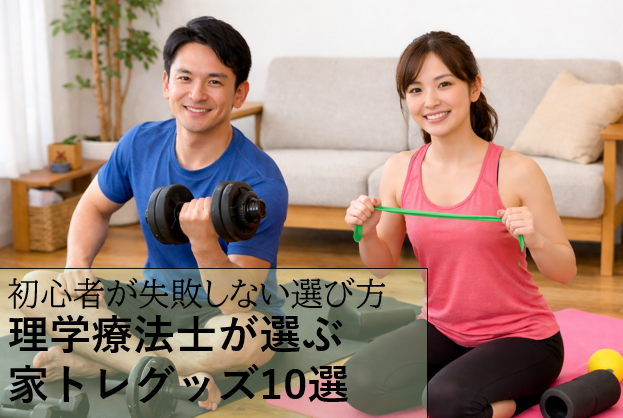 そんな人に向けて、自宅トレーニングで使える器具・グッズの選び方から、注意点(スペース・価格)、そしておすすめ商品10種類を理学療法士の視点でまとめました。