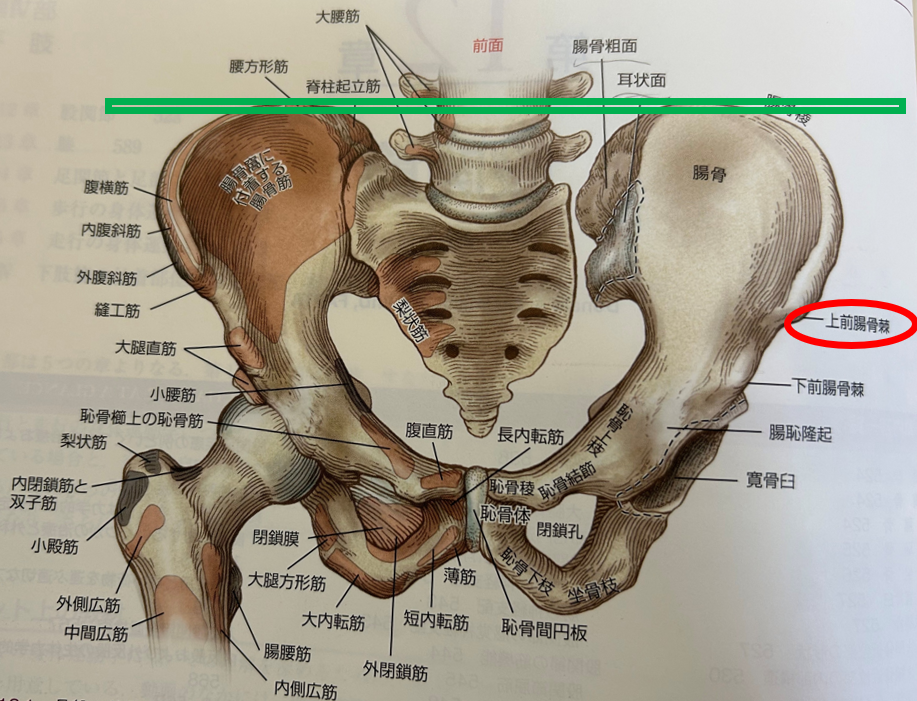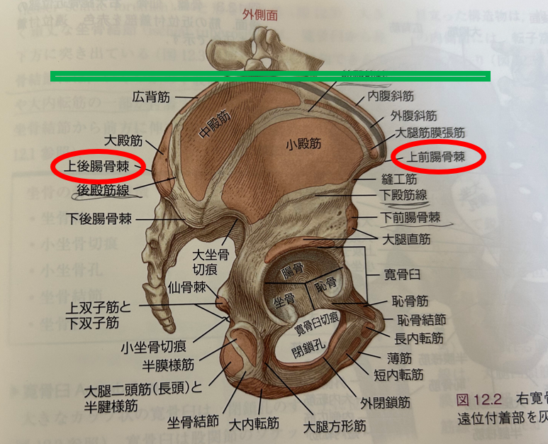 ここで、臨床をしていて、上前腸骨棘・上行腸骨棘・腸骨稜は触診できるものとして覚えるべきだと思います!!