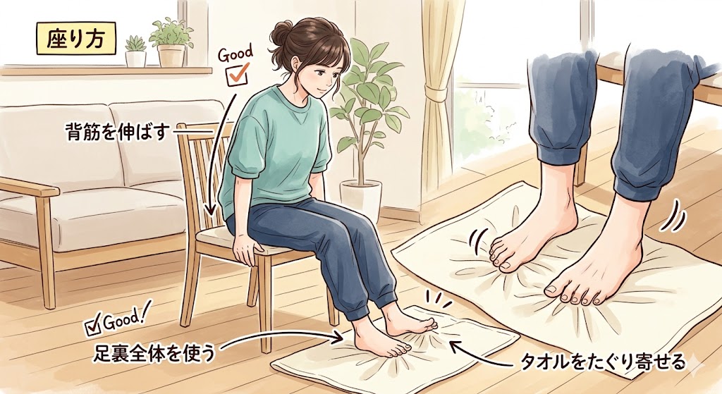 • ✅ タオルギャザーで足の筋力強化