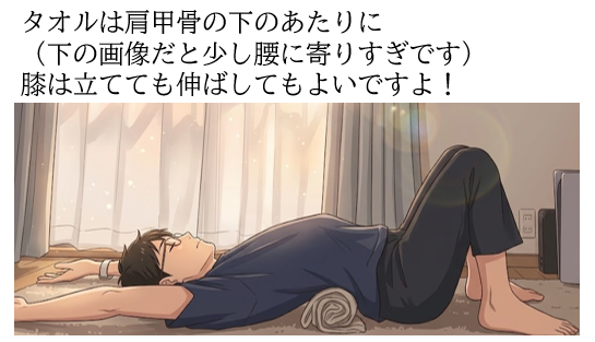 ④ タオルを使った胸椎ストレッチ(背中の可動性アップ)